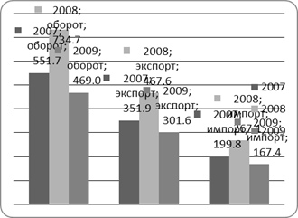 Объем внешней торговли Российской Федерации в 2007-2009 г.г. (в млрд. долл. США)