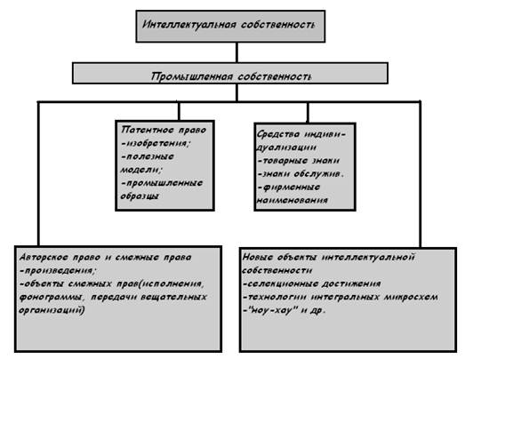 К объектам промышленной собственности традиционно относят изобретения, полезные модели, промышленные образцы, товарные знаки, знаки обслуживания, наименования мест происхождения товаров. Дополнительно законодательство (например, Закон РСФСР «О конкуренции и ограничении монополистической деятельности на товарных рынках») определяет неправомерное использование объектов промышленной собственности недобросовестной конкуренцией. (2)