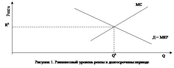 Когда производитель использует землю в качестве продукта и продает свой товар на совершенно конкурентном рынке, то реальная цена земли на уровне Rx соответствует рисунке 1. Пользователь земли максимизирует свою прибыль и при условиях МС = MRP возникает равновесие, уровень ренты при котором Rx. Ситуация с несовершенной конкуренцией, которая также может иметь место, для этого пользователя может характеризоваться взаимной монополией (монополией или монопсонией), и равновесное значение ренты устанавливается в точке Rx, соответствующей пересечению кривых МС и MRP.
