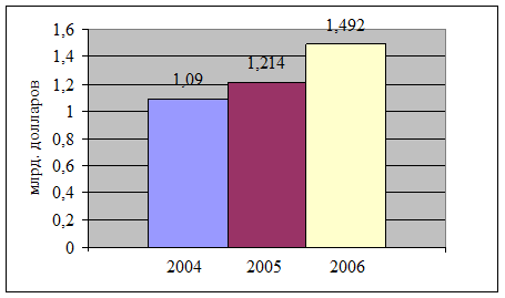 В 2006 году приток прямых иностранных инвестиций достиг 1,49 млрд. долларов США по сравнению с 1,21 млрд. долларов в 2005 году (рис. 2.5.).