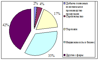 По секторам экономики инвестиции в 2006 году: добывающая и перерабатывающая промышленности и производственная отрасль – 1,97%, строительство – 3,92%, недвижимость и бизнес – 35,03%, торговля – 17,1%, другие – 41,16% (рис. 2.7.).