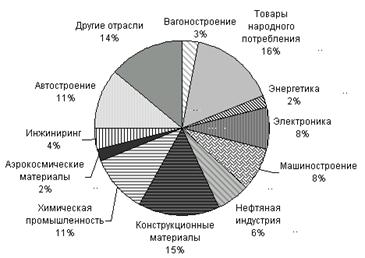 В ряде областей, например при изготовлении реактивных двигателей, сплавы никеля незаменимы. Уникальные свойства никеля обусловили его применение практически во всех отраслях промышленности (рис. 2.1.4.).