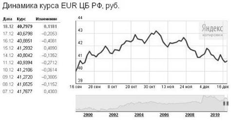 За последний квартал курс евро, в отличие от курсов доллара и иены, относительно рубля не укрепляется. С 4 ноября, когда максимальное значение евро равнялось 43,16 рублям, наблюдается скачкообразная тенденция к снижению его курса. На 18 декабря евро был равен 40,79 рублям.