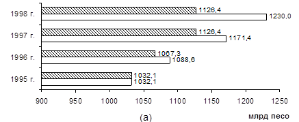 В 1998 г. в Аргентине показатели реального ВВП составили 1126,4 млрд песо, а номинальный ВВП – 1230,0 млрд песо.
