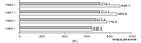 В 1998 г. в Бразилии показатели реального ВВП составили 713,1 млрд реалов, а номинальный ВВП – 895,7 млрд реалов.
