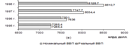 В 1998 г. в США показатели реального ВВП составили 8128,7 млрд долл., а номинальный ВВП – 8510,7 млрд долл.