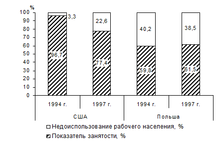 Определить для США и Польши: динамику рабочей силы и долю безработных за 1994-1998 гг.; показатель занятости за 1994 г. и 1997 г.;