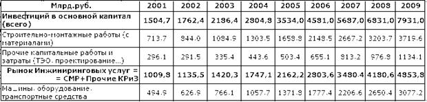 Согласно Диаграмме 3.1.1. объем строительно-монтажных работ и прочих капитальных работ, то есть объем предоставленных инжиниринговых услуг, и затрат в 2007 году составил 3480 млрд. руб. (в 2007 году средний курс доллара США составлял 25 руб., следовательно 3480 млрд. руб. приблизительно равны 139,2 млрд. долл. США). Таким образом, импорт в общем объеме услуг составляет 18,8% предоставленных услуг.