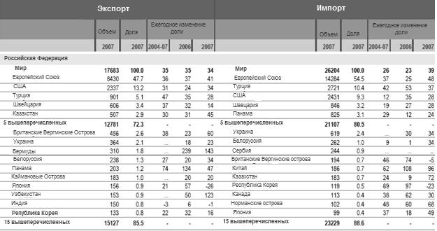 В 2009 году, несмотря на экономический кризис, тенденция роста рынка инженерно-консультационных услуг не меняется и, по данным ВТО, Россия в 2008 году продемонстрировала самый высокий темп роста экспорта в 34%. Благодаря устойчивому росту в 2008 году Россия вошла в десятку самых крупных экспортеров инженерно-консультационных услуг, поднявшись с тринадцатого места в 2007 году. Данные о странах-импортерах российских инжиниринговых услуг представлены в таблице 3.1.2. Как видно из динамики показателей экспорта, на протяжении четырех лет он был достаточно устойчивым, а темпы роста – высокими. Среди основных контрагентов выступают в основном развитые страны, исходя из чего, можно предположить, что объектами торговли являются высокотехнологичные услуги. Объем импорта также увеличиваются, при этом он значительно превышает экспорт, а именно на 8521 млрд. долл. США (32,5%). Кроме того на 5 стран, основных поставщиков инженерно-консультационных услуг в Россию, приходится 80,5% всего импорта, а на 15 стран – 88,6%, для экспорта цифры следующие: 72,3% и 85,5% соответственно. Таким образом, можно отметить, что импорт и экспорт инжиниринговых услуг достаточно концентрирован. Еще один вывод, который можно сделать из данных таблицы, это то, что для Российского рынка наибольшее значение имеет сотрудничество с Европейским союзом.