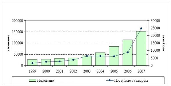 Рис. 2.1 Иностранные инвестиции в российской экономике в 1999-2007 гг., млн долл.[9]