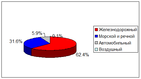 При этом возрастало значение Российских железных дорог и при международных перевозках различных видов грузов. Так в 2004 году 62.4% международных перевозок грузов было осуществлено по железным дорогам России.[4]