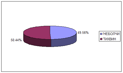 Как видим, лесные грузы отправляются с двух станций – Неболчи, где непосредственно располагается ООО «Тимос», и Тихвин, которая расположена в 50 километрах от поселка Неболчи. Отправка лесных грузов со станции Тихвин производится в рамках Тихвинского проекта. Тихвинский проект был осуществлен группой, состоящей из пяти компаний, представляющих различные звенья цепочки от российского леса до европейского потребителя печатной продукции: «Русский Лес», Stora Enso, Axel Springer, The Random House Group UK и Time Inc. Весной 2005 года Компания «Русский Лес» заменила Тихвинский КЛПХ, который был первым российским партнером в этом проекте.