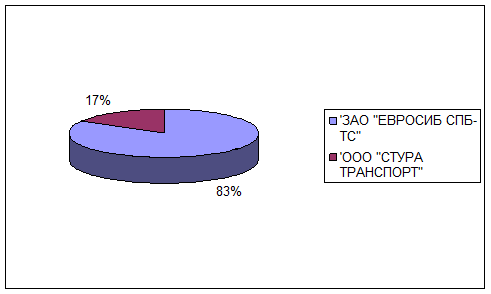 Перевозку грузов компания ООО «Тимос» осуществляет в вагонах, принадлежащих компаниям ЗАО «Евросиб» и ООО «Стура транспорт». (см. Диаграмму 27)