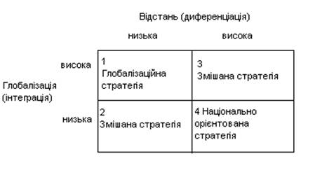 Другие сферы нуждаются в принятии менее рискованных, но сложных комплексных решений. Типичные стратегии для квадрата 2 связаны с наращиванием уровня международной стандартизации продукции или услуг, однако ситуации могут требовать децентрализации управления качеством и контроля и приспосабливаться к особенностям отдельных стран. В квадрате 3 потребности интеграции и дифференциации являются высокими. В этой ситуации сильное стремление интеграции производства должно соединяться с требованиями региональной дифференциации в маркетинге. Этот квадрат представляет собой самый выдающийся вызов для международных корпораций, поскольку он за своей природой является межкультурным и ассоциируется с формулой локализации глобального фокуса.