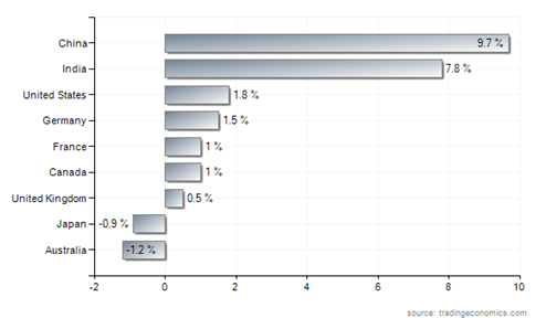 По данным Всемирного банка, в первом квартале 2011 г. Германия заняла 4-е место в мире по среднегодовому темпу роста ВВП с показателем в 1,5 % (рис.1). Это говорит о том, что экономика Германии вышла из состояния рецессии возникшей в результате Мирового финансового кризиса.