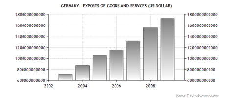 Рис.2. Динамика изменения объема экспорта товаров и услуг в Германии, в долларах США [4]