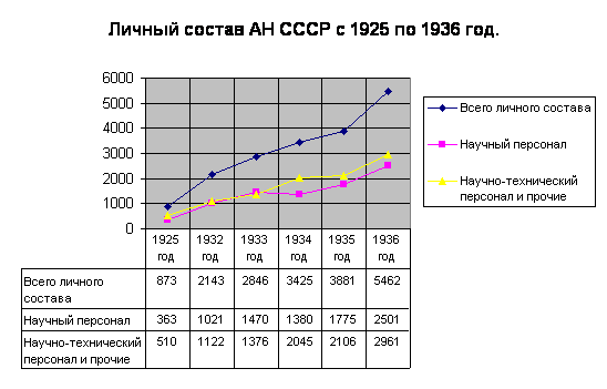 Академия наук финансировалась государством (бюджет АН утверждался СНК), была полностью подчинена СНК, можно сказать она была одним из государственных учреждений. Масштабы деятельности АН изменились столь значительно, что в своем прежнем составе АН не смогла бы справиться со своими новыми задачами. Так как деятельность АН была непосредственно связана с производством, то и при расширении высококвалифицированных научных кадров делали уклон на специалистов технических наук.
