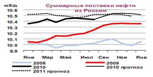 Необходимо сделать вывод, что поставки нефти из России стали увеличиваться в начале 2009 года и к концу 2010 они достигли своего пика. В первую очередь это связано с улучшением инфраструктуры нефтяного рынка, то есть строительство и запуск новых направлений трубопроводного транспорта. А во-вторых со стабилизацией политических отношений, в основном Украины и России.