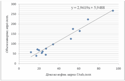 С повышением (понижением) цены нефти марки Urals на 1доллар объем импорта страны повышается (снижается) в среднем на 2,9619 млрд. долларов.