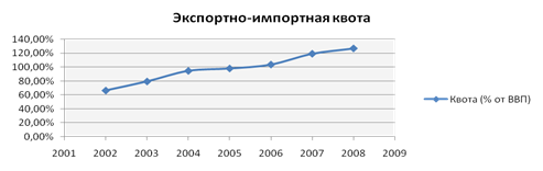 Экспортно-импортная квота =(экспорт + импорт)/ВВП