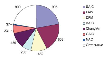 На рисунке 10 показано распределение выпуска китайских автомобилей несколькими крупнейшими производителями.