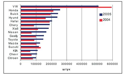 Рисунок 11 - Марки легковых автомобилей, лидирующие по продажам в Китае (более 100 тыс. в год)