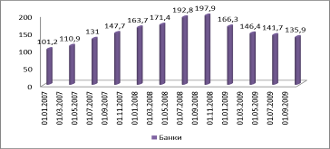 На долю банков приходилась к середине 2009 года треть всего российского внешнего долга - 131 миллиард долларов из 385. Если говорить о банках государственных, то, например, у «Сбербанка» внешних заимствований почти нет, а у ВТБ, наоборот, их немало. Но в целом свои внешние обязательства наращивали в основном те российские банки, которые не связаны с теми или иными финансово-промышленными группами и, соответственно, у которых просто не было других, внутренних источников финансирования.