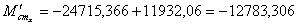 =-52,1 м - абсцисса центра тяжести удобрений в трюме №5 ;
