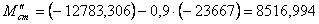 Уточняем значение статического момента от всех нагрузок относительно миделя после расхода запасов: