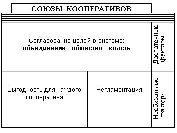 Приведение упрощенной модели (рис.2.10.) обосновано следующими допущениями и аналогиями: кооператив для его отдельного пайщика представляет собой, с известными оговорками, то же самое, что союз кооперативов для отдельного кооператива. Поэтому при анализе деятельности союзов кооперативов можно использовать результаты приведенного в данной работе анализа различных аспектов деятельности отдельного кооператива.