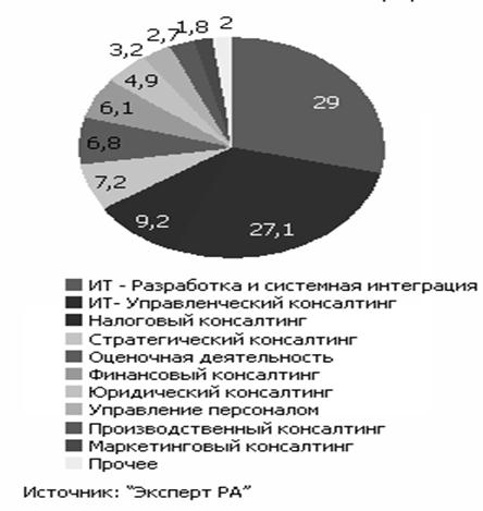 Рис. 2.8 – Структура рынка консалтинговых услуг в 2006 году (без компаний "большой четверки"), %