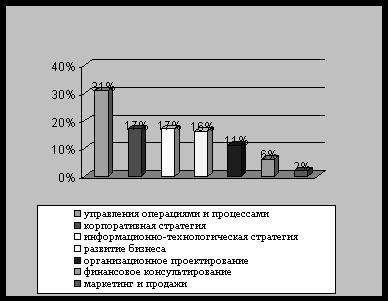 · 31% - консалтинговые услуги по вопросам управления операциями и процессами, включая вопросы реорганизации бизнеса и всеобщего управления качеством (TQM),