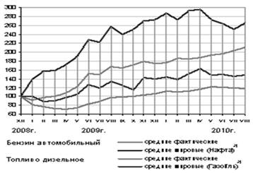 Рис. 4. Динамика бензина и топлива дизельного за 2008-2010 гг.
