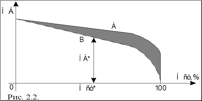 Влияние изменения уровня налогообложения на экономическую активность и налогооблагаемую базу Лэффер воплотил в кривой на рис.2.2. Где НБ - это база для исчисления налога; Нст - налоговая ставка; линия А - доходы, подлежащие налогообложению; линия В - реально облагаемые доходы; заштрихованная область - это доходы скрываемые от налогообложения. Т.е. по сути, эти кривые Лэффера отражают одну и ту же истину: чем больше налоговая ставка, тем больше доходов хозяйственные субъекты скрывают от уплаты налогов, тем больше их переходит в теневую экономику, тем меньше становится база для налогообложения и (с определенной Нст) меньше налоговых отчислений поступает в бюджет[20].