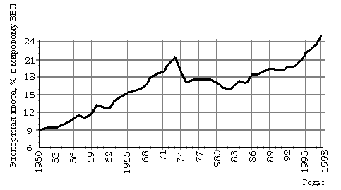 График. Динамика мировой экспортной квоты за 1950–1998 гг.
