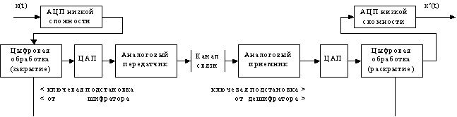 Посредством дискретного кодирования речи с последующим шифрованием всегда достигалась высокая степень закрытия, но в прошлом этот метод не находил широкого распространения в повсеместно имеющихся узкополосных каналах связи из-за низкого качества восстановления передаваемой речи.
