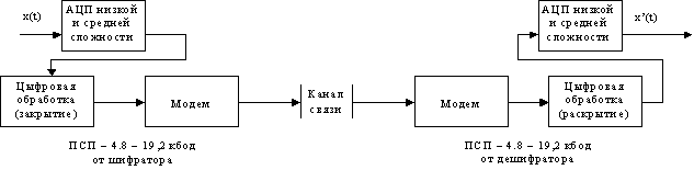 Несмотря на всю свою сложность, аппаратура данного типа представлена на коммерческом рынке рядом моделей, большинство из которых передает данные по каналу связи со скоростями модуляции от 2.4 до 19.2 кбит/с, обеспечивая при этом несколько худшее качество воспроизведения речи по сравнению с обычным телефоном. Основным же преимуществом таких цифровых систем кодирования и шифрования остается высокая степень закрытия речи, получаемая посредством использования широкого набора криптографических методов, применяемых для защиты передачи данных по каналам связи.