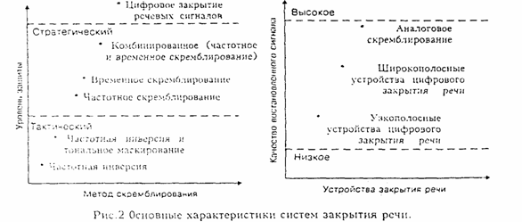 Говоря об уровне, или степени, секретности систем закрытия речи, следует отметин, что эти понятия весьма условные. К настоящему времени не выработано на этот счет четких стандартов или правил. Однако в ряде источников основные уровни защиты определяют как тактический и стратегический, что в некотором смысле пересекается с понятиями практической и теоретической стойкости криптографических систем закрытия данных:
