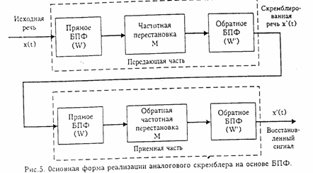 Процесс аналогового скремблирования представляет собой сложное преобразование речевого сигнала с его последующим восстановлением (с сохранением разборчивости речи) после прохождения преобразованного сигнала по узкополосному каналу связи, подверженному воздействию шумов.