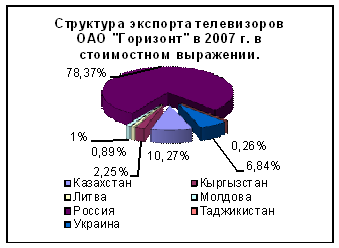 На рисунке 8 показана структура экспорта телевизоров ОАО «Горизонт» в 2007 году.