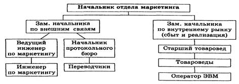 Отдел маркетинга — основное звено управления внешнеэкономической деятельностью предприятия, часть его внутрипроизводственной структуры. Вместе с тем, стоящие перед ним задачи решаются в тесном взаимодействии с другими функциональными подразделениями (ПЭО, финансовый, юридический и другие отделы).