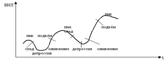 Большинство экономистов, исследующих экономические циклы протяжённостью 10-12 лет, выделяют 4 фазы: