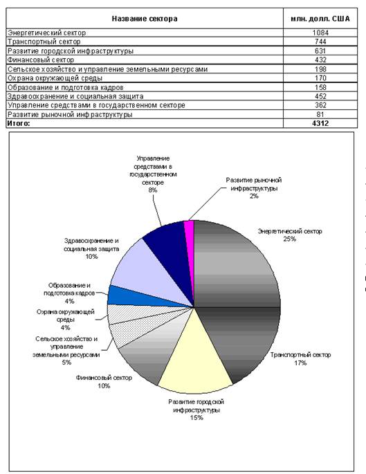 Структура использования средств инвестиционных займов МВФ в РК в различных секторах экономики в 2007 г