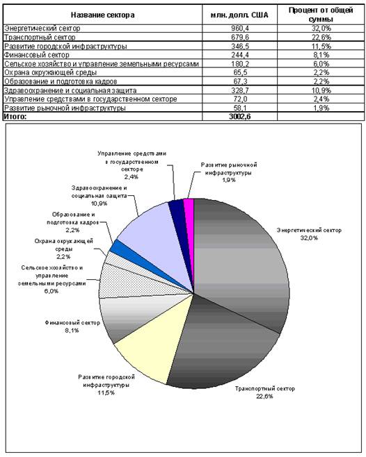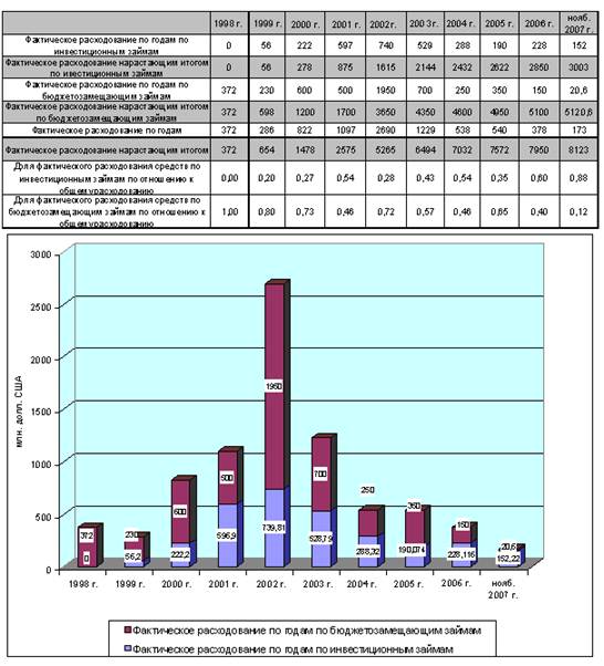 по инвестиционным и бюджетозамещающим займам (в млн. долл. США)