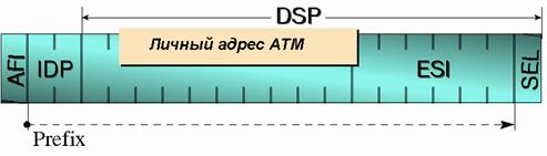 Поле AFI - используется PNNI для различения индивидуальных и групповых адресов АТМ-систем. Поле SEL - игнорируется протоколом PNNI. В адресации активно используется система префиксов. Префикс может занимать от 0 до 152 младших бит адреса. Префикс длиной 0 означает "ВСЕ АТМ-СИСТЕМЫ" и обозначает путь по умолчанию (default route). Префикс длиной больше 0 означает некоторую часть области адресов, причем чем меньше длина префикса, тем шире адресная область, им обозначаемая.