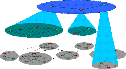 Таким образом, граничные узлы имеют связь с теми узлами верхнего уровня, которые на их уровне представлены их соседними граничными узлами. Эти связи между граничным узлом группы нижнего уровня и узлом, представляющим соседний граничный узел на верхнем уровне, называются UpLink’ами.