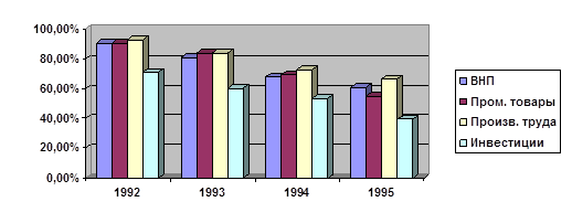 Еще один впечатляющий пример распада экономики — взаимные задолженности предприятий, которые к концу 1995 г. достигли 57% ВНП. [16]