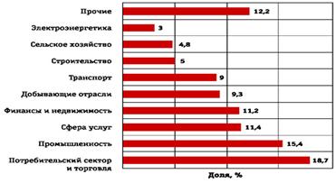 2) Слабо развита такая сфера как финансовый сектор, куда относятся различные информационные, консультационные услуги. Если в нашей стране доля этого сектора всего лишь 11,2 %, то в США эта цифра достигает значения в 37,4 %.