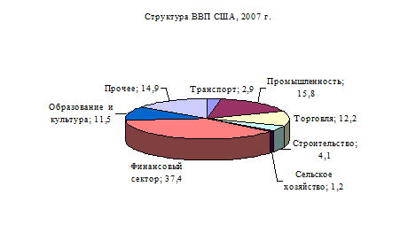 Рис. 5 - Структура ВВП США, 2007 г. (%)