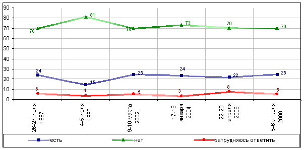 Вопрос второй: «Скажите, пожалуйста, в Вашей семье есть сейчас сбережения, накопления?» (график № 4).